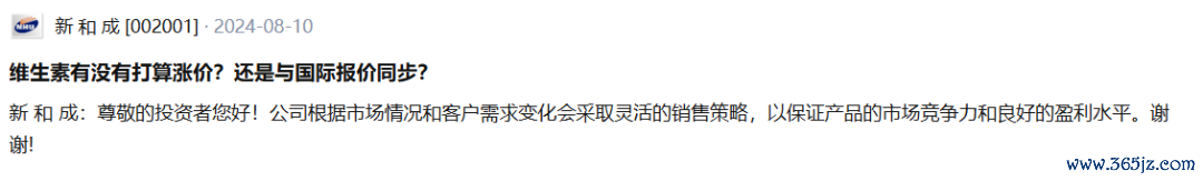 近期,投资者在互动平台多次询问A股相关上市公司:“维生素产品有没有打算涨价?还是与国际报价同步?”