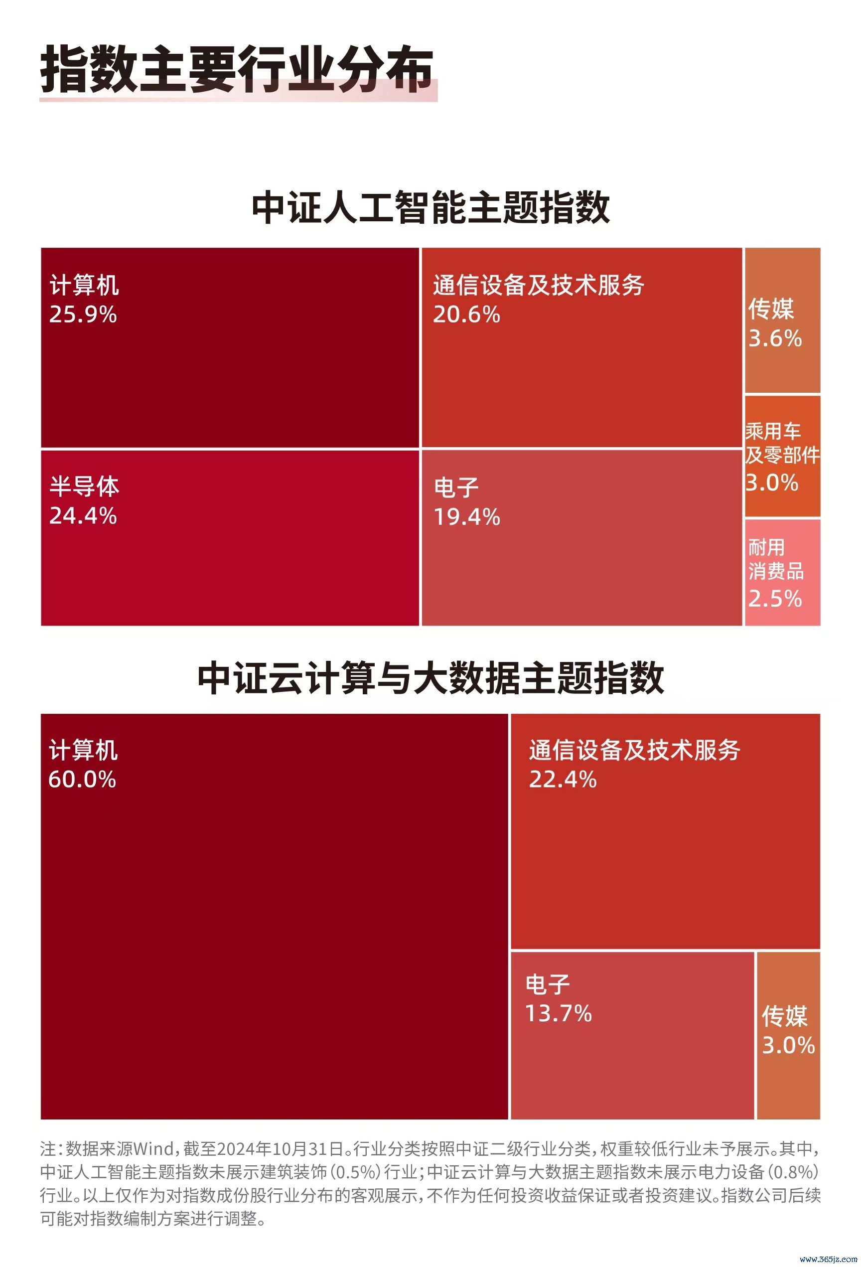 人工智能、云计算等技术助推数字化转型,相关行业主题指数备受关注。其中,中证人工智能主题指数聚焦产业链的各细分环节龙头,中证云计算与大数据主题指数聚焦人工智能产业链上游的算力和下游的软件应用。